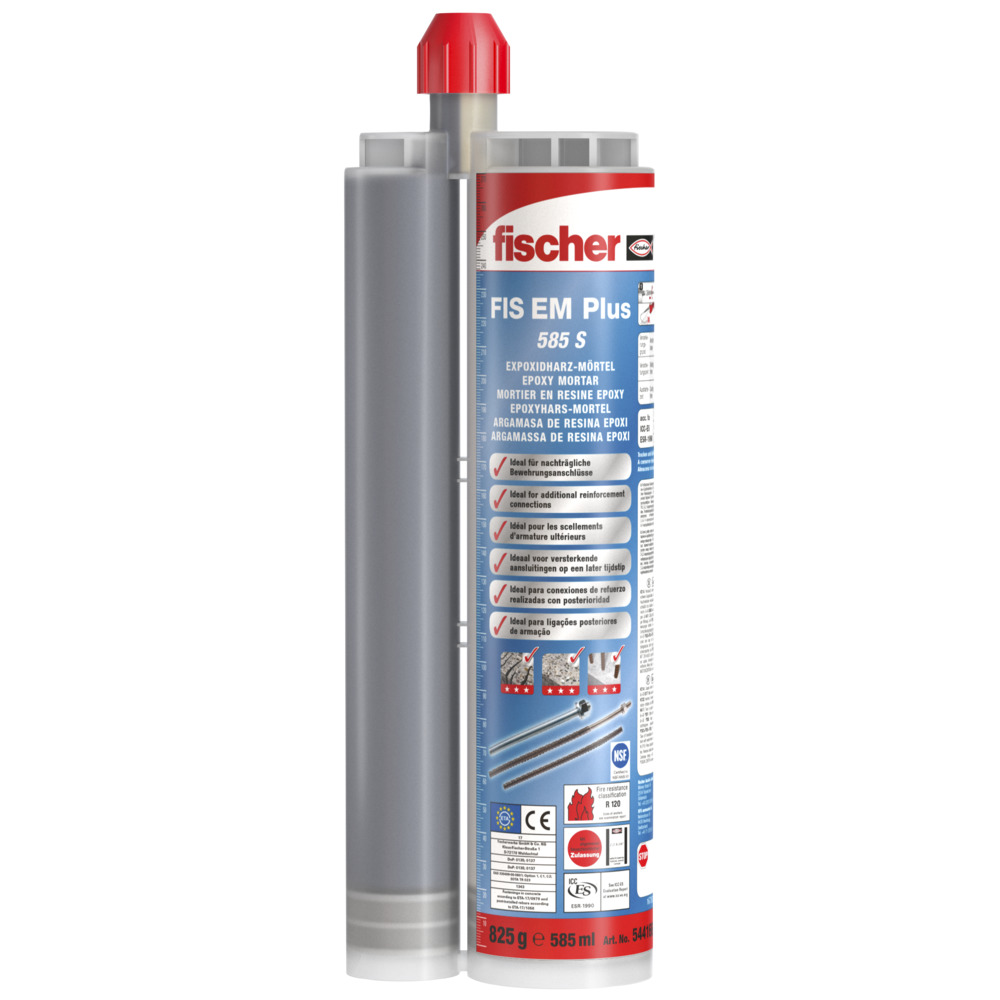 Product Description The fischer injection mortar FIS EM Plus 390 S is a high-quality epoxy resin mortar for maximum load-bearing capacity in cracked and non-cracked concrete. Alongside the injection mortar, the injection system consists of reinforcement steel, the approved components anchor rod FIS A and internal threaded anchor RG M I. The anchor rod FIS A can be set with variable anchorage depths. This enables the system to be ideally adjusted to the load to be supported. This optimises the use of materials. The epoxy resin mortar is suitable for fixings in indoor and outdoor areas such as shear connectors for concrete layers, high racks, or heavy-duty steel constructions.